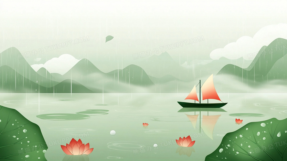 本作品内容为卡通山水荷花下雨天背景, 格式为 jpg, 大小2 MB, 图片尺寸为2912 x 1632, 作品中背景图片无需修改, 源文件无水印,可以直接使用, 欢迎使用熊猫办公。 如认为平台内容涉嫌侵权,可通过邮件:tousu@tukuppt.com提出书面通知,我们将及时处理。