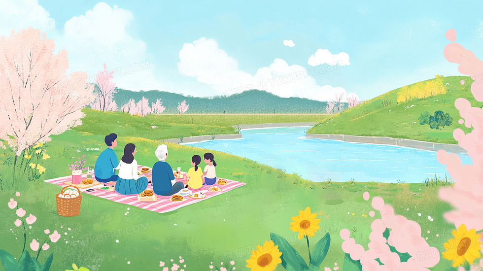 本作品内容为春天一家人在草地上小溪边野炊卡通插画, 格式为 jpg, 大小3 MB, 图片尺寸为2912 x 1632, 源文件无水印, 欢迎使用熊猫办公。 如认为平台内容涉嫌侵权,可通过邮件:tousu@tukuppt.com提出书面通知,我们将及时处理。