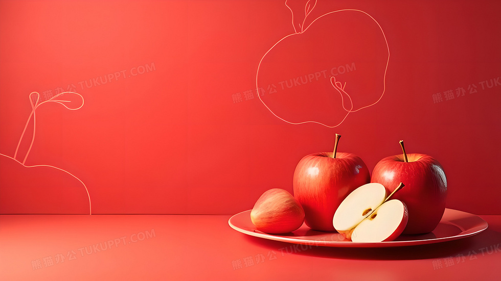 本作品内容为极简风创意水果食品苹果背景, 格式为 jpg, 大小2 MB, 图片尺寸为3072 x 1728, 作品中背景图片无需修改, 源文件无水印,可以直接使用, 欢迎使用熊猫办公。 如认为平台内容涉嫌侵权,可通过邮件:tousu@tukuppt.com提出书面通知,我们将及时处理。