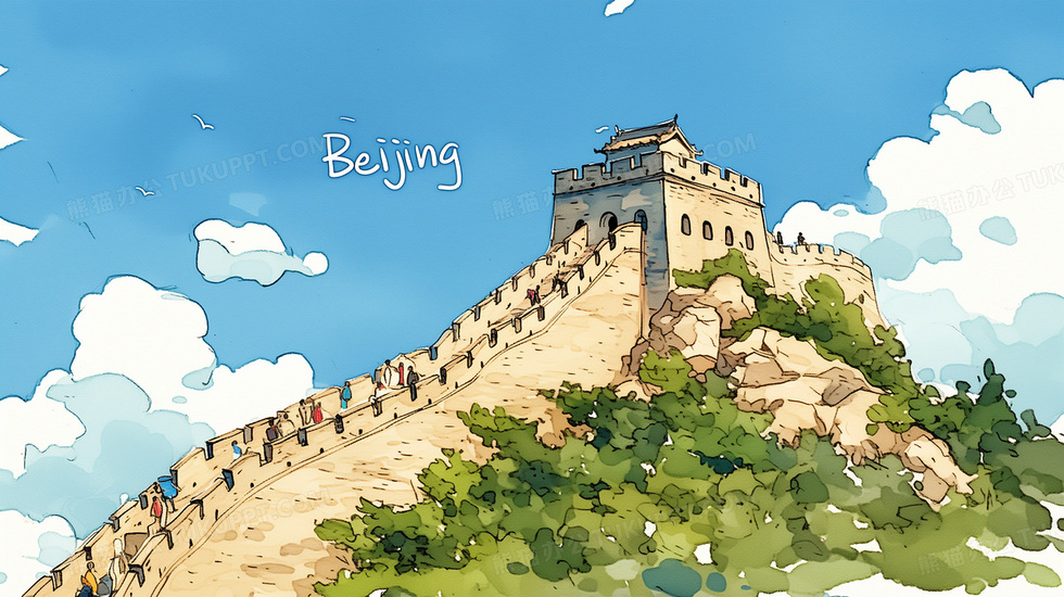 本作品内容为八达岭长城手绘风格插画, 格式为 jpg, 大小7 MB, 图片尺寸为2912 x 1632, 源文件无水印, 欢迎使用熊猫办公。 如认为平台内容涉嫌侵权,可通过邮件:tousu@tukuppt.com提出书面通知,我们将及时处理。