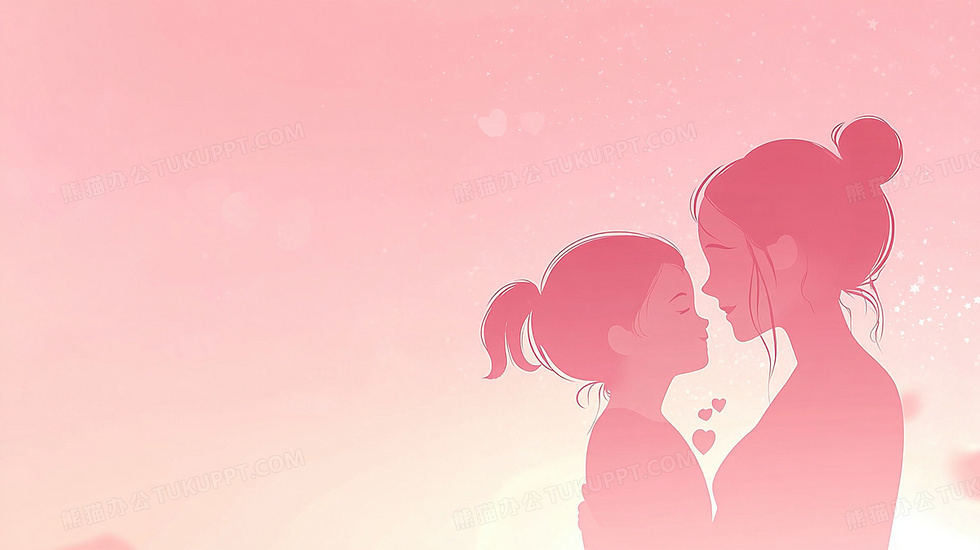 本作品内容为粉色剪影妈妈和孩子亲情亲子背景, 格式为 jpg, 大小2 MB, 图片尺寸为2912 x 1632, 作品中背景图片无需修改, 源文件无水印,可以直接使用, 欢迎使用熊猫办公。 如认为平台内容涉嫌侵权,可通过邮件:tousu@tukuppt.com提出书面通知,我们将及时处理。