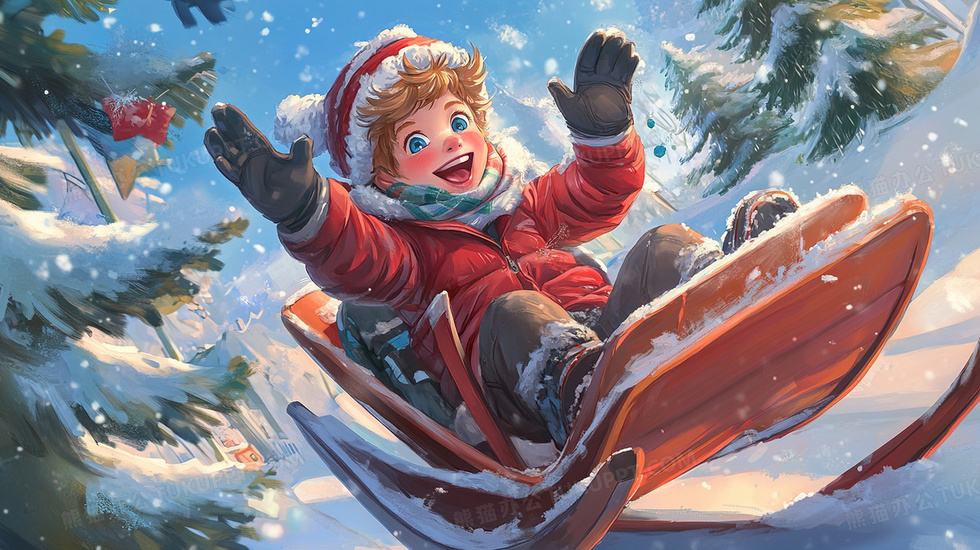 首页 > 插画 > 科技艺术 > 水彩手绘 > 冬天穿着厚衣服户外玩耍滑雪橇人物插画