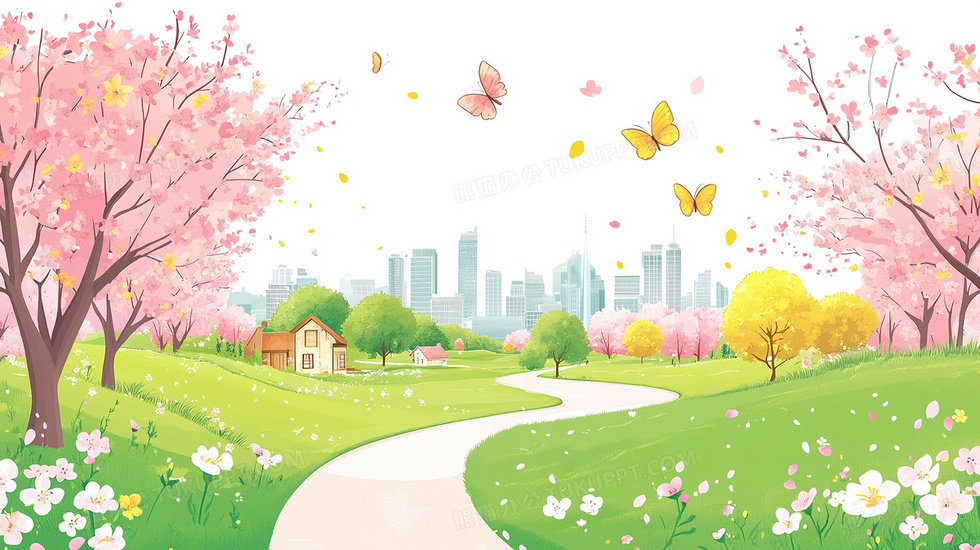 本作品内容为桃花小路春天花朵花卉唯美插画, 格式为 jpg, 大小3 MB, 图片尺寸为2912 x 1632, 源文件无水印, 欢迎使用熊猫办公。 如认为平台内容涉嫌侵权,可通过邮件:tousu@tukuppt.com提出书面通知,我们将及时处理。
