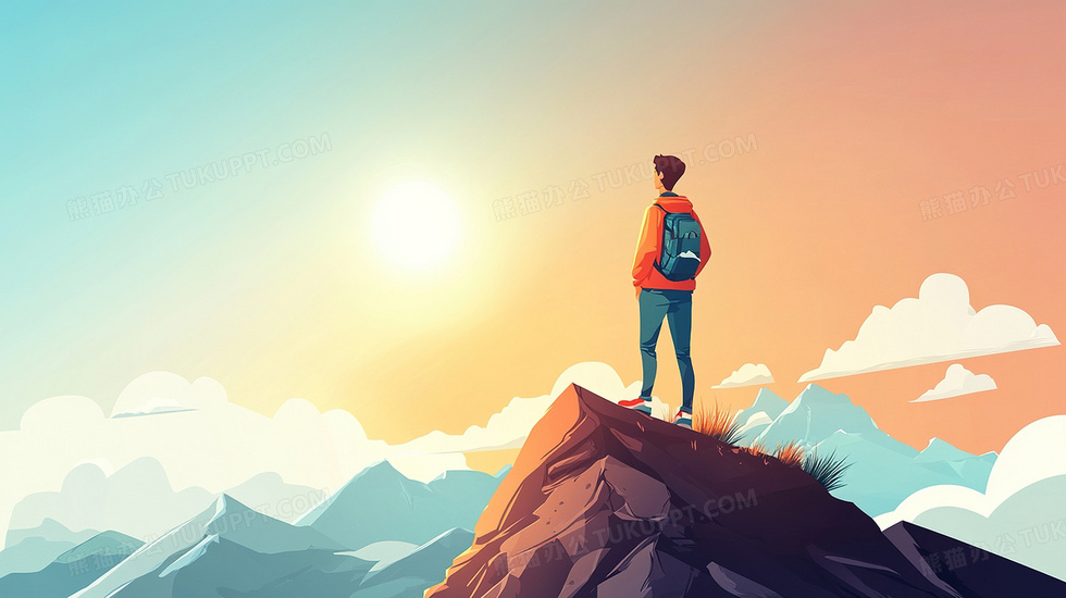 本作品内容为登顶积极向上励志正能量插画, 格式为 jpg, 大小2 MB, 图片尺寸为2912 x 1632, 源文件无水印, 欢迎使用熊猫办公。 如认为平台内容涉嫌侵权,可通过邮件:tousu@tukuppt.com提出书面通知,我们将及时处理。
