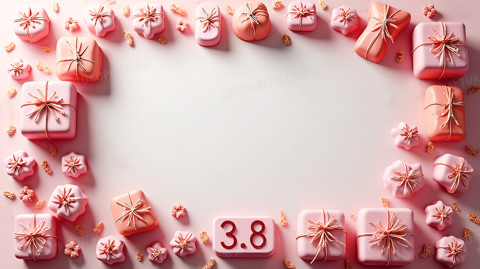 本作品内容为粉色3.8妇女节礼物边框背景, 格式为 jpg, 大小6 MB, 图片尺寸为3072 x 1728, 作品中背景图片无需修改, 源文件无水印,可以直接使用, 欢迎使用熊猫办公。 如认为平台内容涉嫌侵权,可通过邮件:tousu@tukuppt.com提出书面通知,我们将及时处理。