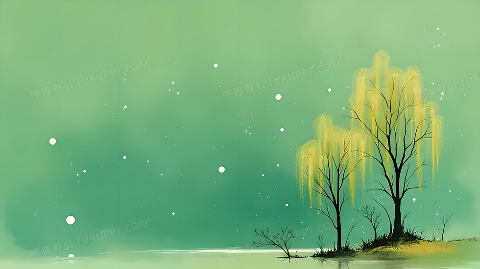 本作品内容为绿色春天河边的柳树背景, 格式为 jpg, 大小6 MB, 图片尺寸为3072 x 1728, 作品中背景图片无需修改, 源文件无水印,可以直接使用, 欢迎使用熊猫办公。 如认为平台内容涉嫌侵权,可通过邮件:tousu@tukuppt.com提出书面通知,我们将及时处理。