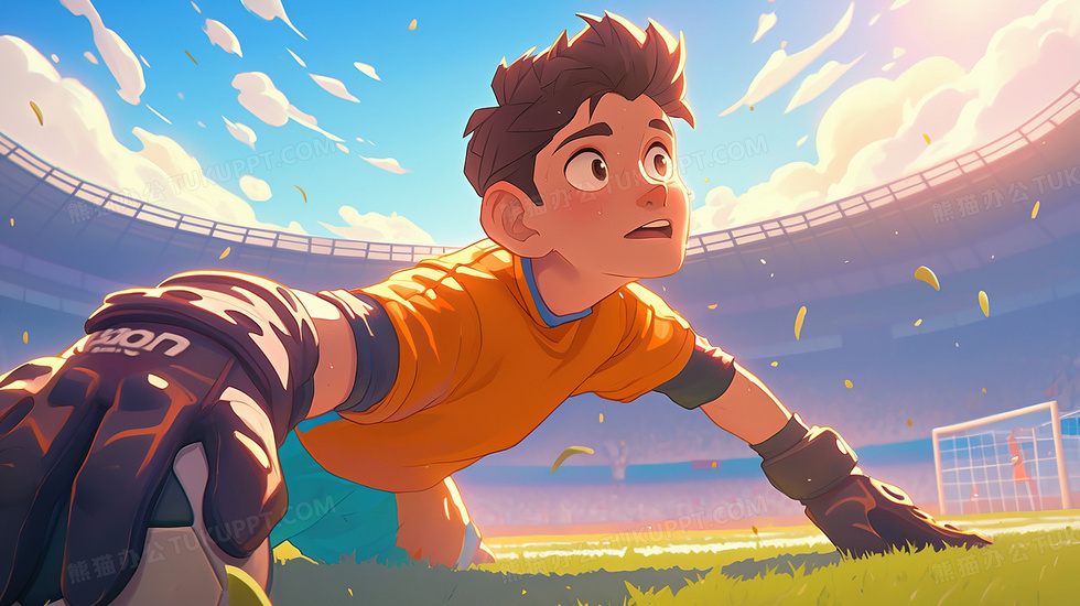 本作品内容为足球守门员卡通插画, 格式为 jpg, 大小3 MB, 图片尺寸为2912 x 1632, 源文件无水印, 欢迎使用熊猫办公。 如认为平台内容涉嫌侵权,可通过邮件:tousu@tukuppt.com提出书面通知,我们将及时处理。