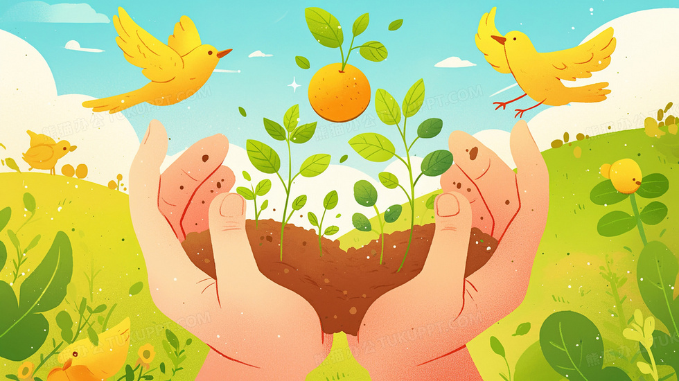 本作品内容为呵护在手掌心土壤里的小树苗插画, 格式为 jpg, 大小3 MB, 图片尺寸为2912 x 1632, 源文件无水印, 欢迎使用熊猫办公。 如认为平台内容涉嫌侵权,可通过邮件:tousu@tukuppt.com提出书面通知,我们将及时处理。