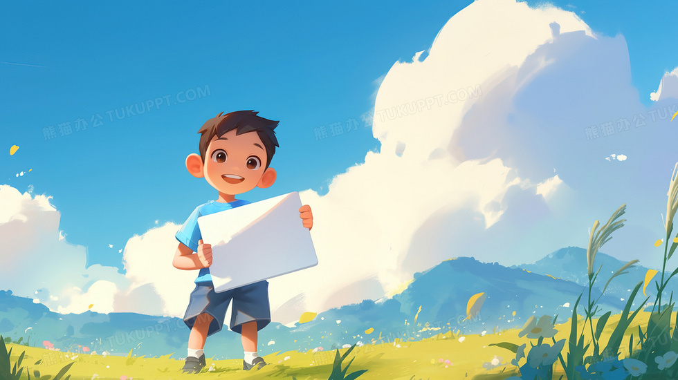 本作品内容为举着牌子的卡通孩子插画, 格式为 jpg, 大小3 MB, 图片尺寸为2912 x 1632, 源文件无水印, 欢迎使用熊猫办公。 如认为平台内容涉嫌侵权,可通过邮件:tousu@tukuppt.com提出书面通知,我们将及时处理。