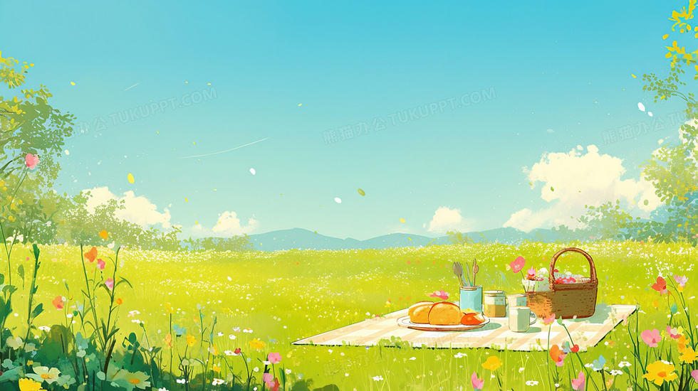 本作品内容为春季野餐美食背景, 格式为 jpg, 大小3 MB, 图片尺寸为2912 x 1632, 作品中背景图片无需修改, 源文件无水印,可以直接使用, 欢迎使用熊猫办公。 如认为平台内容涉嫌侵权,可通过邮件:tousu@tukuppt.com提出书面通知,我们将及时处理。