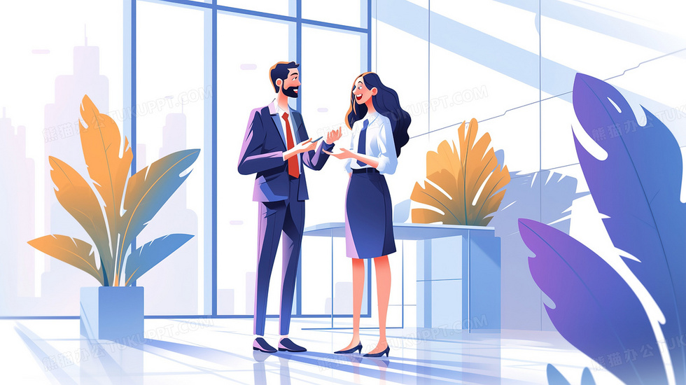 本作品内容为扁平化商务人士交谈插画, 格式为 jpg, 大小2 MB, 图片尺寸为2912 x 1632, 源文件无水印, 欢迎使用熊猫办公。 如认为平台内容涉嫌侵权,可通过邮件:tousu@tukuppt.com提出书面通知,我们将及时处理。