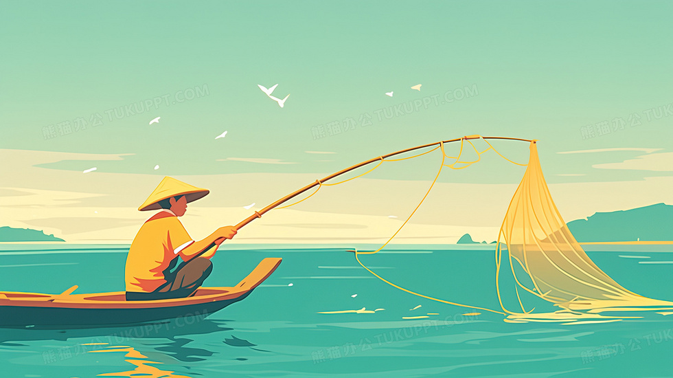 本作品内容为渔网捕鱼手绘背景, 格式为 jpg, 大小2 MB, 图片尺寸为2912 x 1632, 作品中背景图片无需修改, 源文件无水印,可以直接使用, 欢迎使用熊猫办公。 如认为平台内容涉嫌侵权,可通过邮件:tousu@tukuppt.com提出书面通知,我们将及时处理。