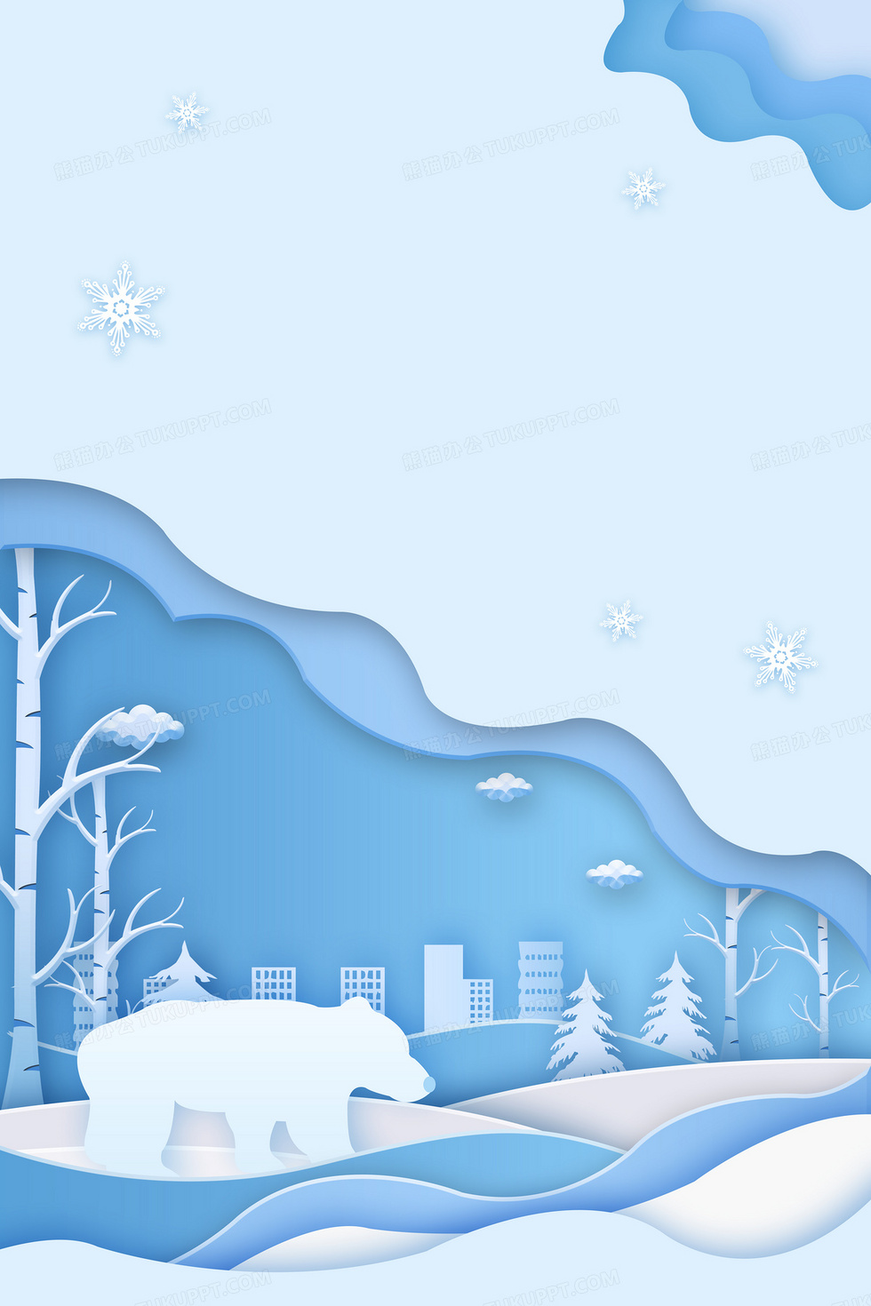 本作品内容为蓝色清新冬季剪纸风风景雪花北极熊背景, 格式为 psd, 大小110 MB, 图片尺寸为3543 x 5315, 作品中背景图片无需修改, 源文件无水印,可以直接使用, 欢迎使用熊猫办公。 如认为平台内容涉嫌侵权,可通过邮件:tousu@tukuppt.com提出书面通知,我们将及时处理。