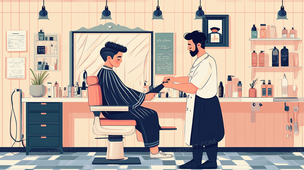 本作品内容为理发师职业人物工作插画, 格式为 jpg, 大小3 MB, 图片尺寸为2912 x 1632, 源文件无水印, 欢迎使用熊猫办公。 如认为平台内容涉嫌侵权,可通过邮件:tousu@tukuppt.com提出书面通知,我们将及时处理。
