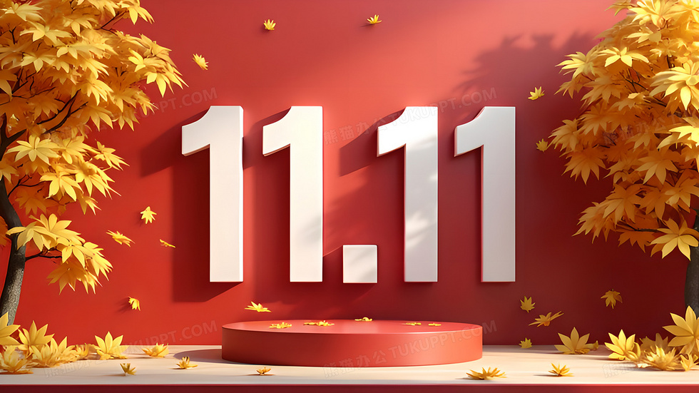 本作品内容为双11秋叶装饰电商展台舞台促销背景, 格式为 jpg, 大小3 MB, 图片尺寸为3072 x 1728, 作品中背景图片无需修改, 源文件无水印,可以直接使用, 欢迎使用熊猫办公。 如认为平台内容涉嫌侵权,可通过邮件:tousu@tukuppt.com提出书面通知,我们将及时处理。