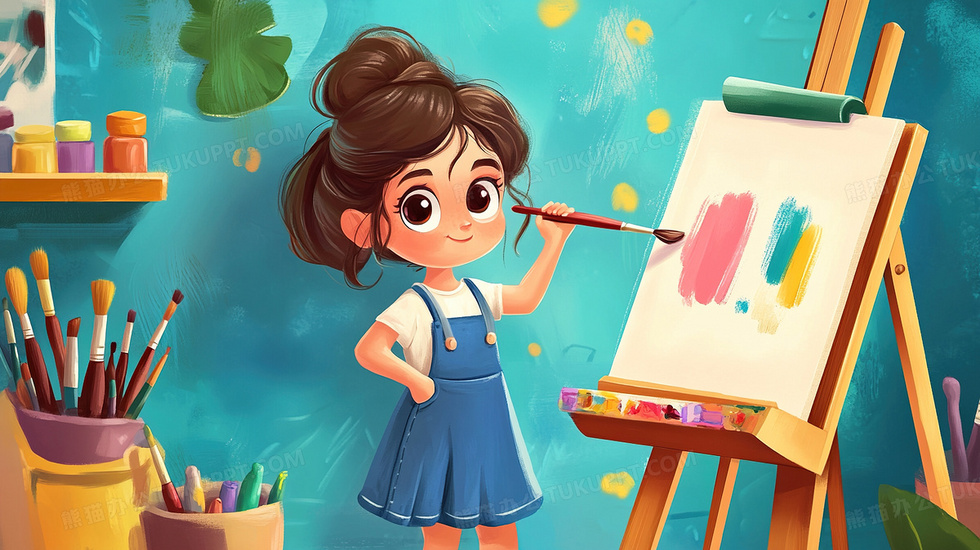 本作品内容为女孩画架绘画艺术美术插画, 格式为 jpg, 大小3 MB, 图片尺寸为2912 x 1632, 源文件无水印, 欢迎使用熊猫办公。 如认为平台内容涉嫌侵权,可通过邮件:tousu@tukuppt.com提出书面通知,我们将及时处理。