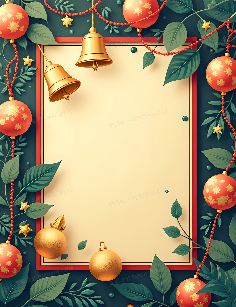 本作品内容为圣诞节喜庆铃铛彩球边框装饰背景, 格式为 jpg, 大小8 MB, 图片尺寸为2368 x 3072, 作品中背景图片无需修改, 源文件无水印,可以直接使用, 欢迎使用熊猫办公。 如认为平台内容涉嫌侵权,可通过邮件:tousu@tukuppt.com提出书面通知,我们将及时处理。