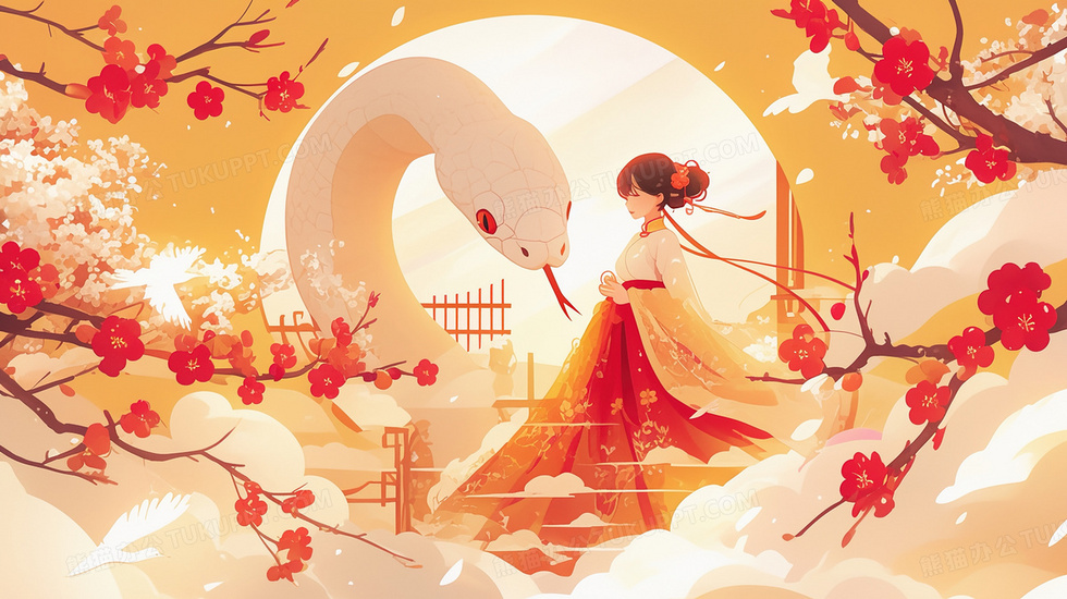 本作品内容为植物花卉与古风女孩白蛇插画, 格式为 jpg, 大小3 MB, 图片尺寸为2912 x 1632, 源文件无水印, 欢迎使用熊猫办公。 如认为平台内容涉嫌侵权,可通过邮件:tousu@tukuppt.com提出书面通知,我们将及时处理。