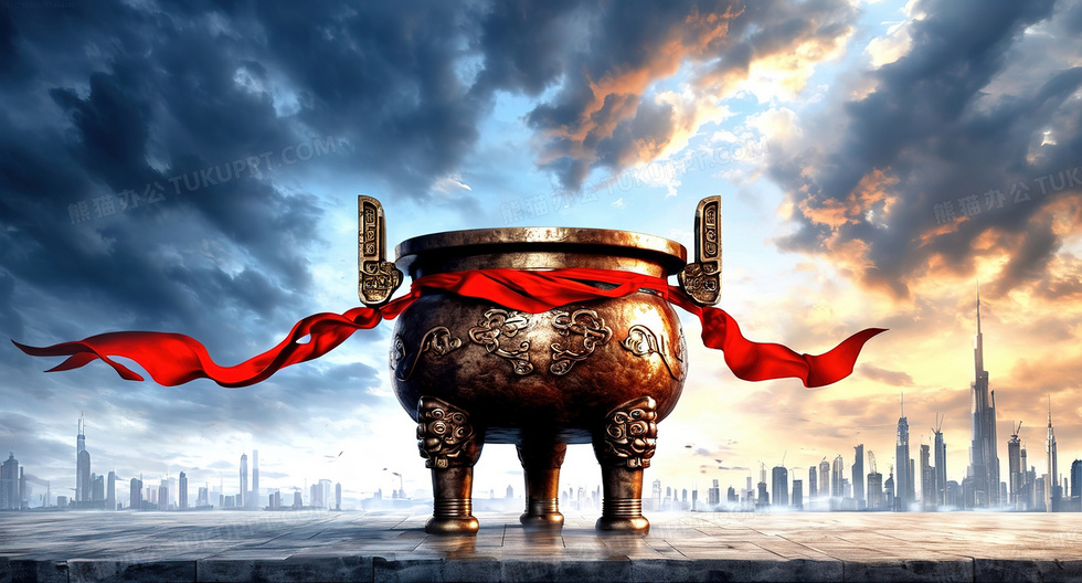 本作品内容为香炉城市创意组合背景, 格式为 jpg, 大小4 MB, 图片尺寸为3328 x 1792, 作品中背景图片无需修改, 源文件无水印,可以直接使用, 欢迎使用熊猫办公。 如认为平台内容涉嫌侵权,可通过邮件:tousu@tukuppt.com提出书面通知,我们将及时处理。