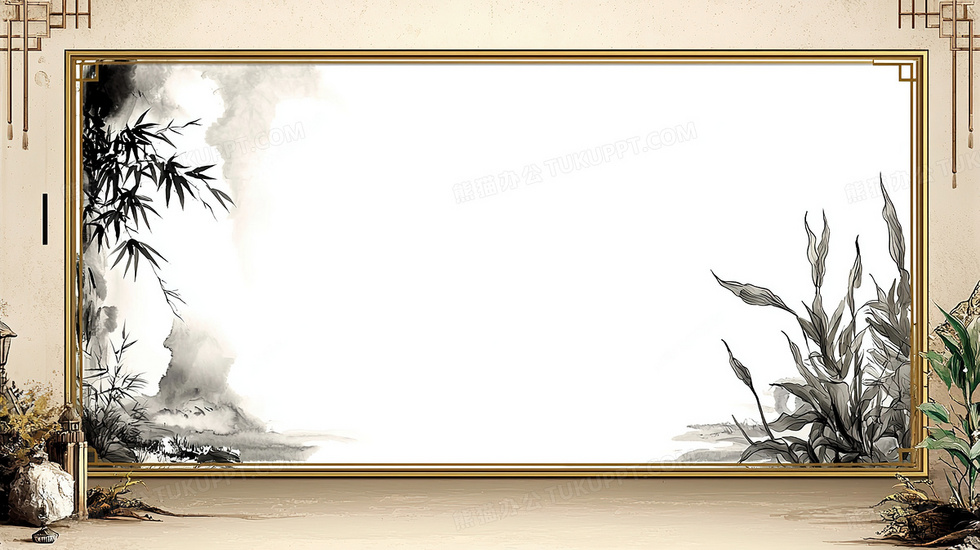 本作品内容为复古中国风植物边框创意背景, 格式为 jpg, 大小2 MB, 图片尺寸为2912 x 1632, 作品中背景图片无需修改, 源文件无水印,可以直接使用, 欢迎使用熊猫办公。 如认为平台内容涉嫌侵权,可通过邮件:tousu@tukuppt.com提出书面通知,我们将及时处理。
