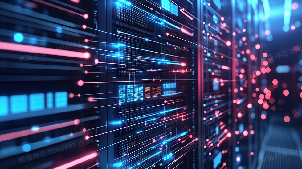本作品内容为蓝色科技互联网网络服务器机房背景, 格式为 jpg, 大小3 MB, 图片尺寸为2912 x 1632, 作品中背景图片无需修改, 源文件无水印,可以直接使用, 欢迎使用熊猫办公。 如认为平台内容涉嫌侵权,可通过邮件:tousu@tukuppt.com提出书面通知,我们将及时处理。