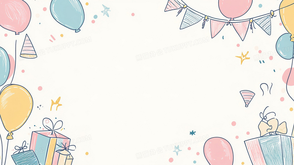 本作品内容为生日相关线稿背景, 格式为 jpg, 大小2 MB, 图片尺寸为2912 x 1632, 作品中背景图片无需修改, 源文件无水印,可以直接使用, 欢迎使用熊猫办公。 如认为平台内容涉嫌侵权,可通过邮件:tousu@tukuppt.com提出书面通知,我们将及时处理。