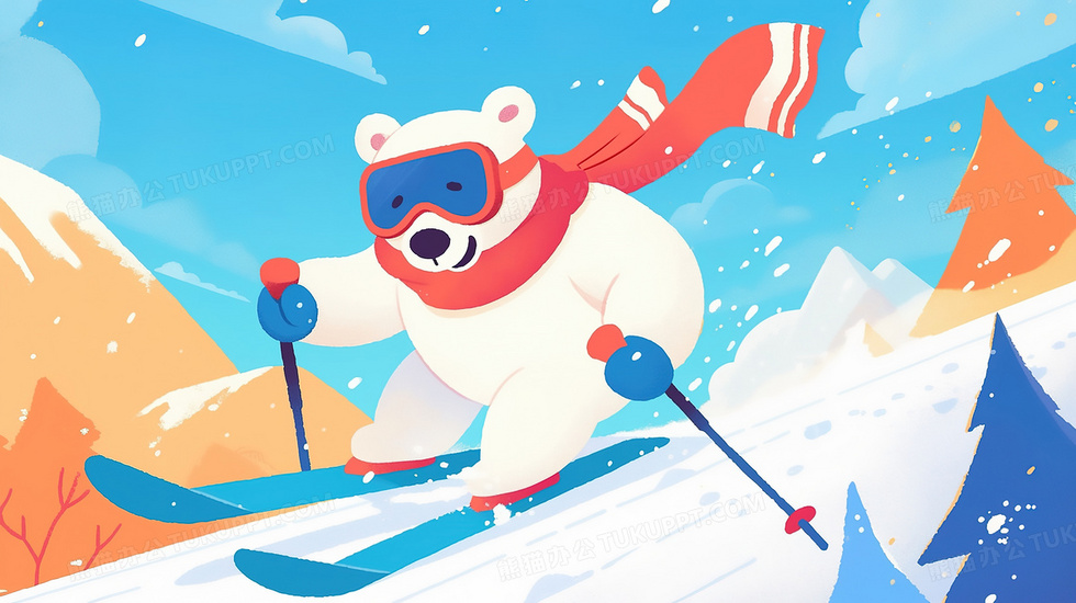 本作品内容为冬天动物小白熊滑雪冬季运动插画, 格式为 jpg, 大小2 MB, 图片尺寸为2912 x 1632, 源文件无水印, 欢迎使用熊猫办公。 如认为平台内容涉嫌侵权,可通过邮件:tousu@tukuppt.com提出书面通知,我们将及时处理。
