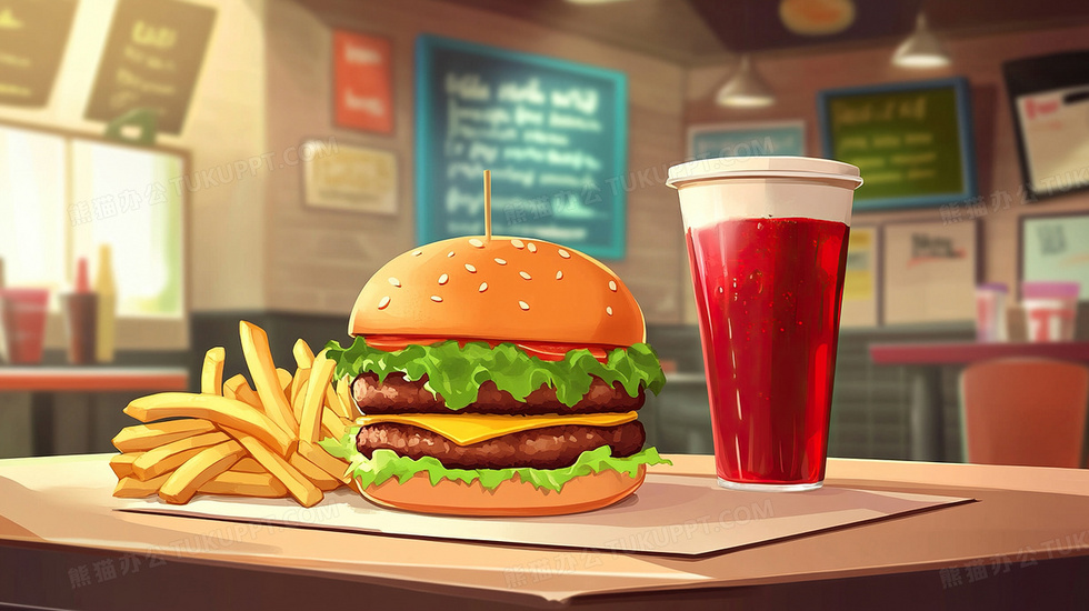 本作品内容为汉堡可乐快餐食物膨化食品插画, 格式为 jpg, 大小3 MB, 图片尺寸为2912 x 1632, 源文件无水印, 欢迎使用熊猫办公。 如认为平台内容涉嫌侵权,可通过邮件:tousu@tukuppt.com提出书面通知,我们将及时处理。