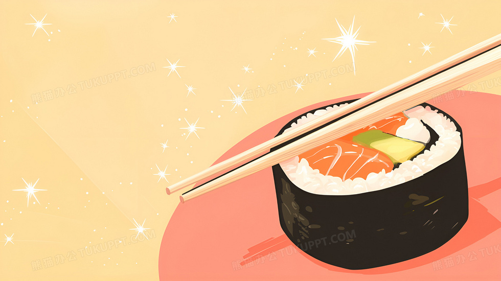 本作品内容为简约卡通寿司美食背景, 格式为 jpg, 大小2 MB, 图片尺寸为2912 x 1632, 作品中背景图片无需修改, 源文件无水印,可以直接使用, 欢迎使用熊猫办公。 如认为平台内容涉嫌侵权,可通过邮件:tousu@tukuppt.com提出书面通知,我们将及时处理。