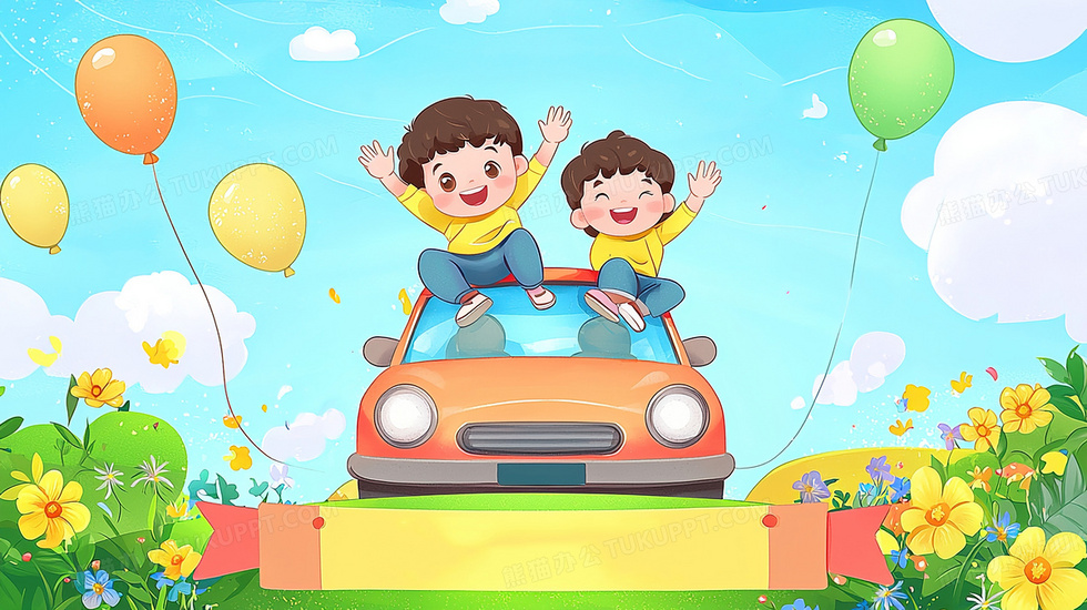 本作品内容为国庆假期开心坐车出游的孩子插画, 格式为 jpg, 大小3 MB, 图片尺寸为2912 x 1632, 源文件无水印, 欢迎使用熊猫办公。 如认为平台内容涉嫌侵权,可通过邮件:tousu@tukuppt.com提出书面通知,我们将及时处理。