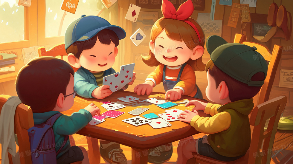 本作品内容为娱乐生活打扑克牌儿童卡通插画, 格式为 jpg, 大小3 MB, 图片尺寸为2912 x 1632, 源文件无水印, 欢迎使用熊猫办公。 如认为平台内容涉嫌侵权,可通过邮件:tousu@tukuppt.com提出书面通知,我们将及时处理。