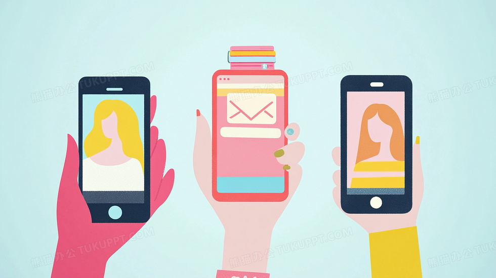 本作品内容为手机聊天接电话通讯联络插画, 格式为 jpg, 大小2 MB, 图片尺寸为2912 x 1632, 源文件无水印, 欢迎使用熊猫办公。 如认为平台内容涉嫌侵权,可通过邮件:tousu@tukuppt.com提出书面通知,我们将及时处理。