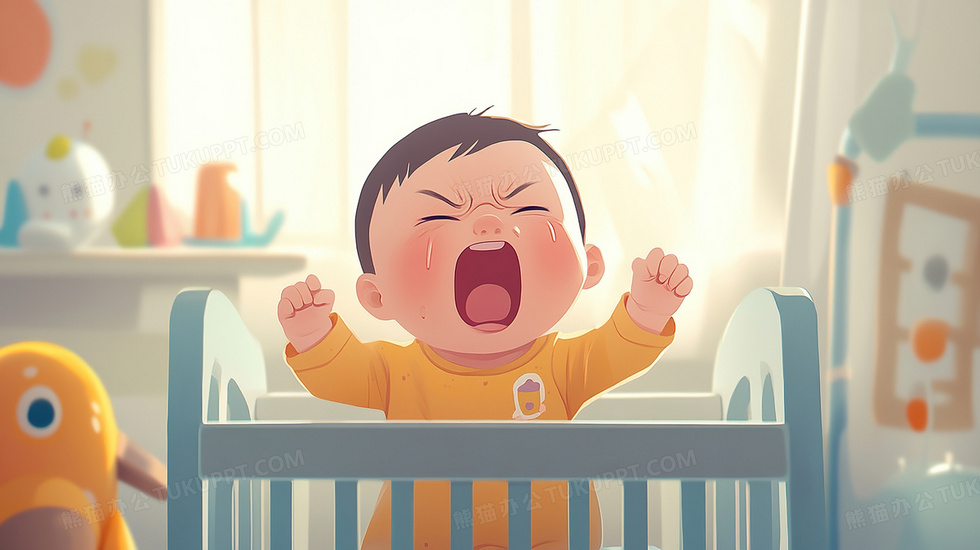 本作品内容为在摇篮哭闹的婴儿插画, 格式为 jpg, 大小2 MB, 图片尺寸为2912 x 1632, 源文件无水印, 欢迎使用熊猫办公。 如认为平台内容涉嫌侵权,可通过邮件:tousu@tukuppt.com提出书面通知,我们将及时处理。