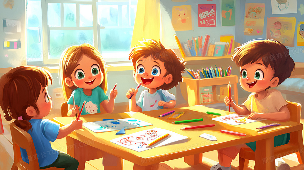 本作品内容为一群孩子在幼儿园的美术课上涂鸦插画, 格式为 jpg, 大小2 MB, 图片尺寸为2912 x 1632, 源文件无水印, 欢迎使用熊猫办公。 如认为平台内容涉嫌侵权,可通过邮件:tousu@tukuppt.com提出书面通知,我们将及时处理。