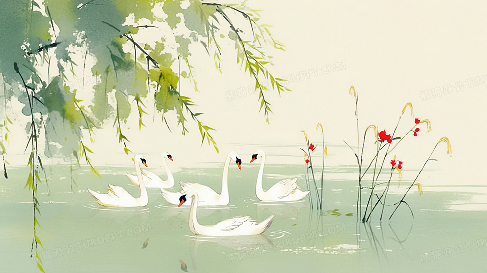 本作品内容为柳树下池塘中嬉戏的白鹅背景, 格式为 jpg, 大小1 MB, 图片尺寸为2912 x 1632, 作品中背景图片无需修改, 源文件无水印,可以直接使用, 欢迎使用熊猫办公。 如认为平台内容涉嫌侵权,可通过邮件:tousu@tukuppt.com提出书面通知,我们将及时处理。