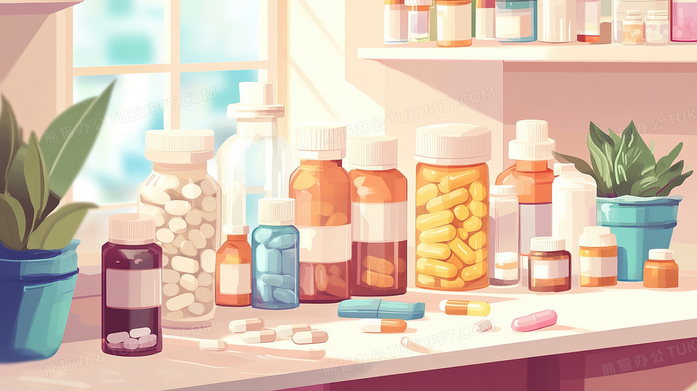 本作品内容为桌面上的药品插画, 格式为 jpg, 大小2 MB, 图片尺寸为2912 x 1632, 源文件无水印, 欢迎使用熊猫办公。 如认为平台内容涉嫌侵权,可通过邮件:tousu@tukuppt.com提出书面通知,我们将及时处理。