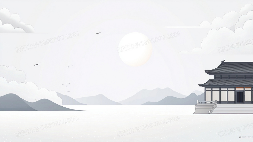 本作品内容为卡通中式建筑日出背景, 格式为 jpg, 大小2 MB, 图片尺寸为2912 x 1632, 作品中背景图片无需修改, 源文件无水印,可以直接使用, 欢迎使用熊猫办公。 如认为平台内容涉嫌侵权,可通过邮件:tousu@tukuppt.com提出书面通知,我们将及时处理。