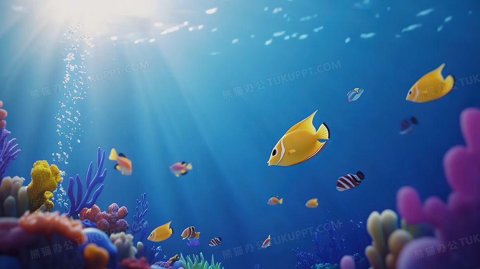 本作品内容为海底世界鱼群背景, 格式为 jpg, 大小3 MB, 图片尺寸为2912 x 1632, 作品中背景图片无需修改, 源文件无水印,可以直接使用, 欢迎使用熊猫办公。 如认为平台内容涉嫌侵权,可通过邮件:tousu@tukuppt.com提出书面通知,我们将及时处理。