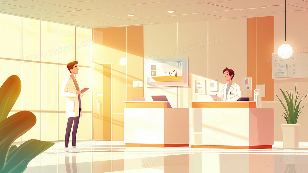 本作品内容为医院问诊台医生插画, 格式为 jpg, 大小2 MB, 图片尺寸为2912 x 1632, 源文件无水印, 欢迎使用熊猫办公。 如认为平台内容涉嫌侵权,可通过邮件:tousu@tukuppt.com提出书面通知,我们将及时处理。