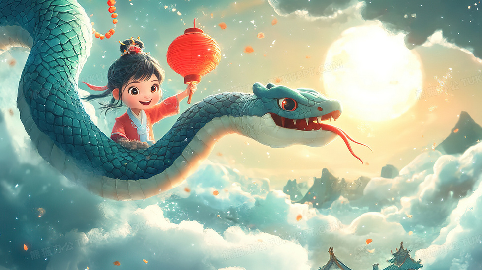 本作品内容为卡通蛇年女孩和青蛇创意壁纸插画, 格式为 jpg, 大小3 MB, 图片尺寸为2912 x 1632, 源文件无水印, 欢迎使用熊猫办公。 如认为平台内容涉嫌侵权,可通过邮件:tousu@tukuppt.com提出书面通知,我们将及时处理。