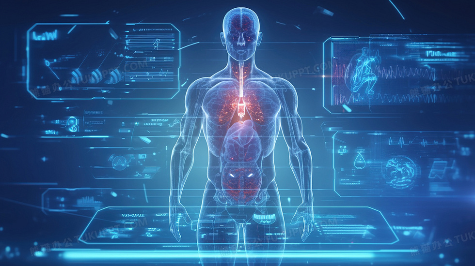 本作品内容为蓝色人体器官骨骼结构图创意插画, 格式为 jpg, 大小3 MB, 图片尺寸为2912 x 1632, 源文件无水印, 欢迎使用熊猫办公。 如认为平台内容涉嫌侵权,可通过邮件:tousu@tukuppt.com提出书面通知,我们将及时处理。