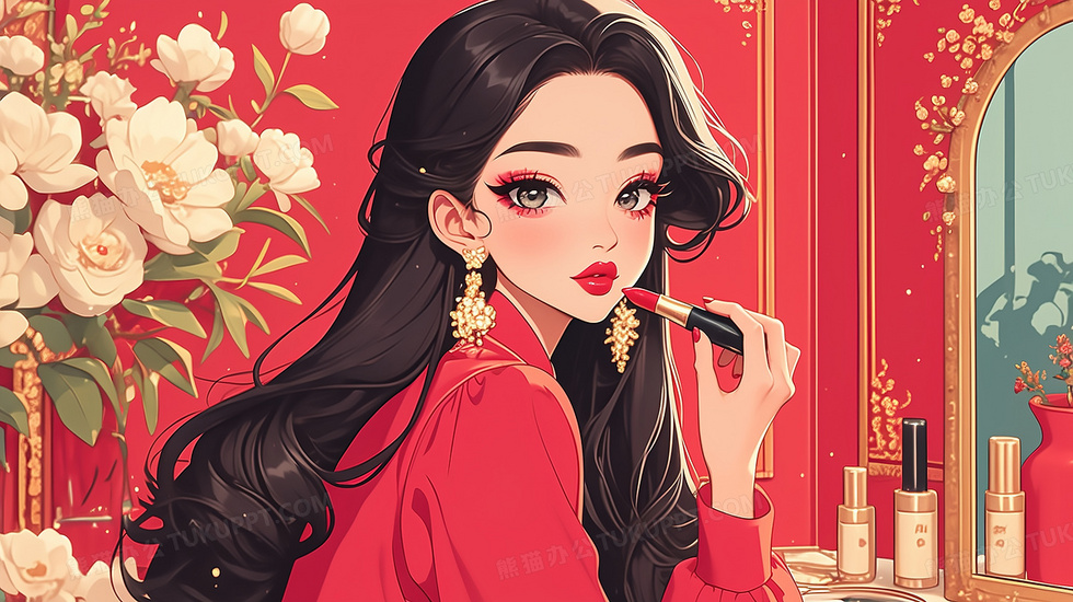 本作品内容为红色卡通女性化妆涂口红插画, 格式为 jpg, 大小3 MB, 图片尺寸为2912 x 1632, 源文件无水印, 欢迎使用熊猫办公。 如认为平台内容涉嫌侵权,可通过邮件:tousu@tukuppt.com提出书面通知,我们将及时处理。