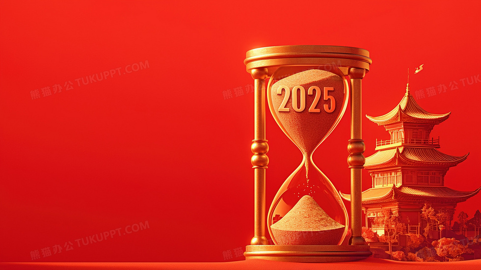 本作品内容为新年2025沙漏倒计时中式建筑背景, 格式为 jpg, 大小2 MB, 图片尺寸为2912 x 1632, 作品中背景图片无需修改, 源文件无水印,可以直接使用, 欢迎使用熊猫办公。 如认为平台内容涉嫌侵权,可通过邮件:tousu@tukuppt.com提出书面通知,我们将及时处理。