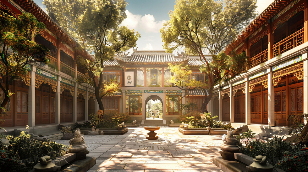 本作品内容为中式建筑庭院风景插画, 格式为 jpg, 大小4 MB, 图片尺寸为2912 x 1632, 源文件无水印, 欢迎使用熊猫办公。 如认为平台内容涉嫌侵权,可通过邮件:tousu@tukuppt.com提出书面通知,我们将及时处理。