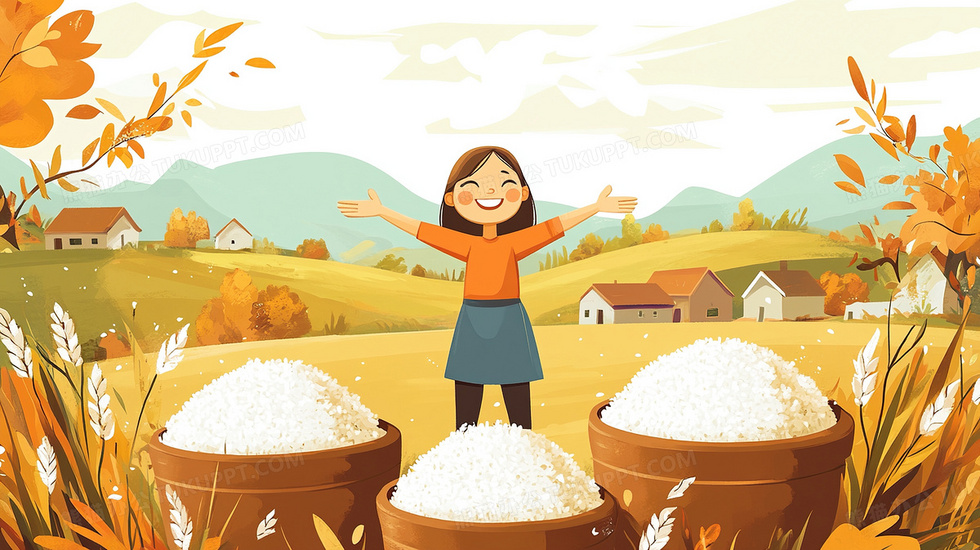 本作品内容为世界粮食日秋天大米丰收的女孩插画, 格式为 jpg, 大小3 MB, 图片尺寸为2912 x 1632, 源文件无水印, 欢迎使用熊猫办公。 如认为平台内容涉嫌侵权,可通过邮件:tousu@tukuppt.com提出书面通知,我们将及时处理。