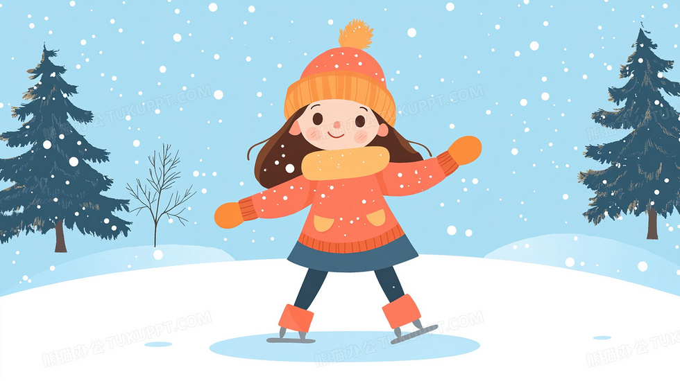 本作品内容为女孩滑冰小雪节气冬天插画, 格式为 jpg, 大小2 MB, 图片尺寸为2912 x 1632, 源文件无水印, 欢迎使用熊猫办公。 如认为平台内容涉嫌侵权,可通过邮件:tousu@tukuppt.com提出书面通知,我们将及时处理。