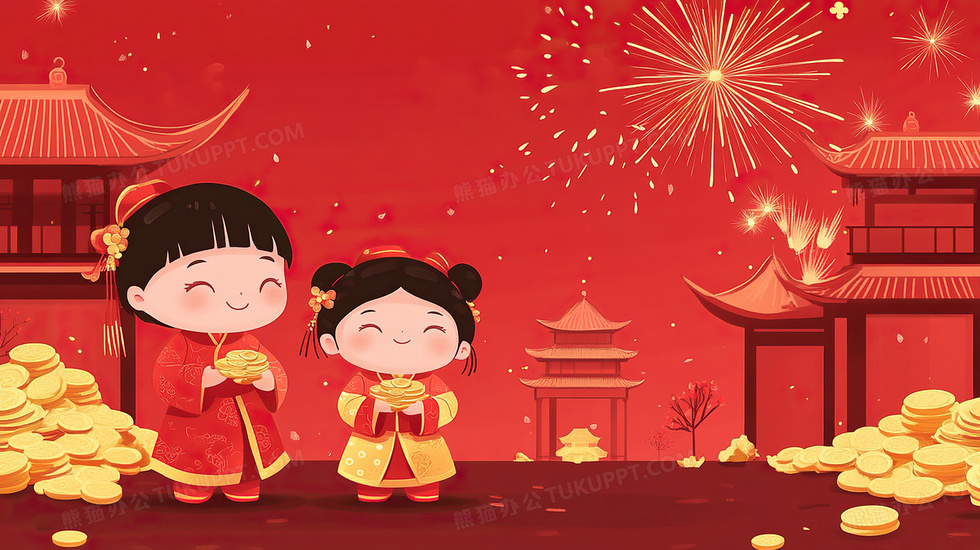 本作品内容为红色新年小孩欢喜过年金币恭喜发财插画, 格式为 jpg, 大小3 MB, 图片尺寸为2912 x 1632, 源文件无水印, 欢迎使用熊猫办公。 如认为平台内容涉嫌侵权,可通过邮件:tousu@tukuppt.com提出书面通知,我们将及时处理。