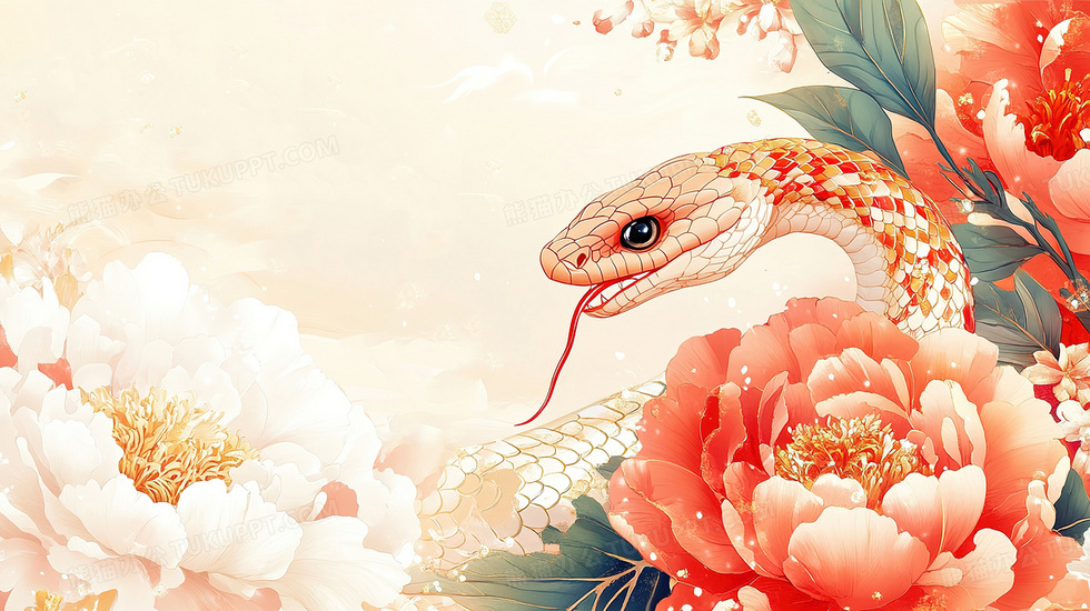 本作品内容为唯美中国风牡丹花蛇年背景图, 格式为 jpg, 大小3 MB, 图片尺寸为2912 x 1632, 作品中背景图片无需修改, 源文件无水印,可以直接使用, 欢迎使用熊猫办公。 如认为平台内容涉嫌侵权,可通过邮件:tousu@tukuppt.com提出书面通知,我们将及时处理。