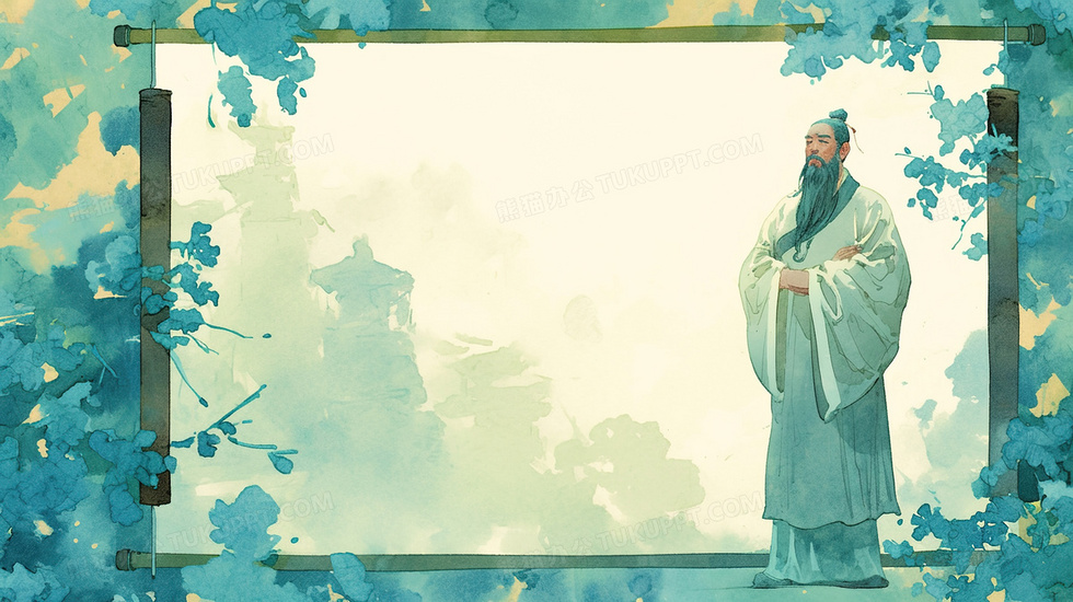 本作品内容为站在卷轴边的古代老夫子背景, 格式为 jpg, 大小3 MB, 图片尺寸为2912 x 1632, 作品中背景图片无需修改, 源文件无水印,可以直接使用, 欢迎使用熊猫办公。 如认为平台内容涉嫌侵权,可通过邮件:tousu@tukuppt.com提出书面通知,我们将及时处理。