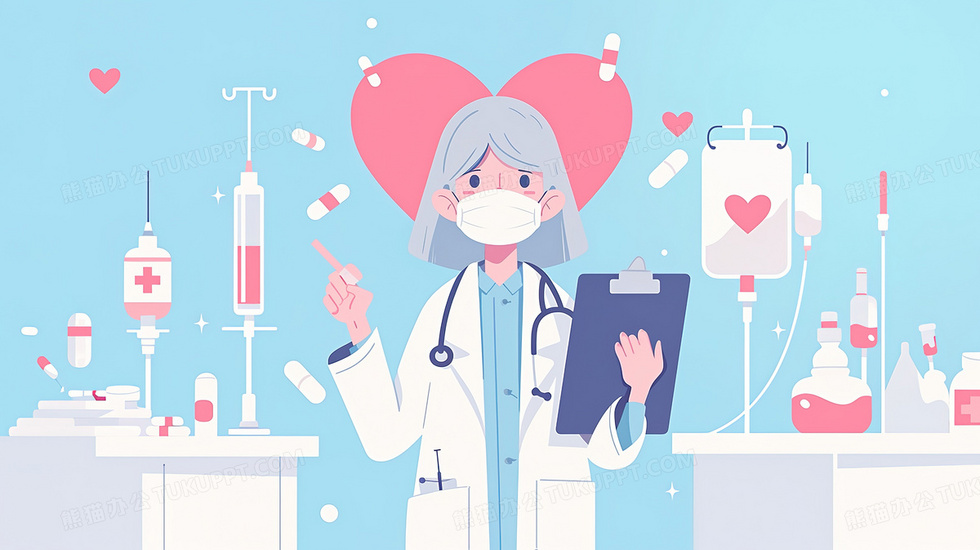 本作品内容为手拿病历本检查心脏的女医生插画, 格式为 jpg, 大小2 MB, 图片尺寸为2912 x 1632, 源文件无水印, 欢迎使用熊猫办公。 如认为平台内容涉嫌侵权,可通过邮件:tousu@tukuppt.com提出书面通知,我们将及时处理。